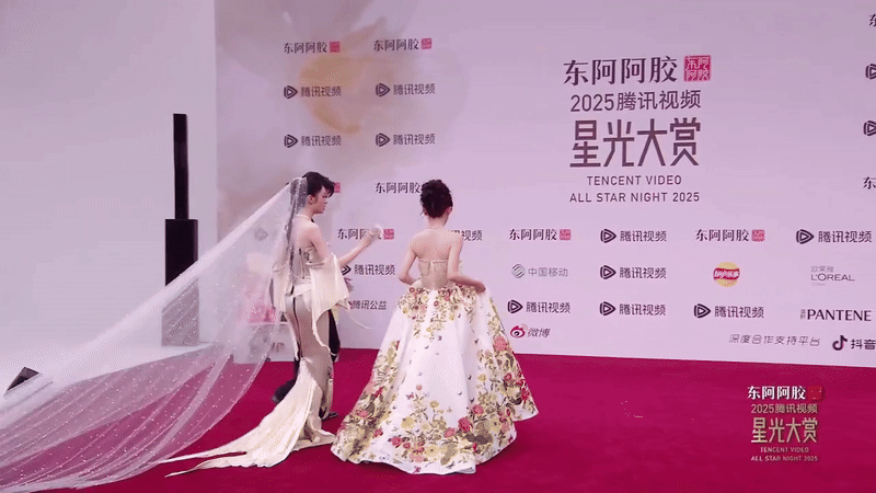 Trước khi các hạng mục giải thưởng được công bố, thảm đỏ luôn là điểm nhấn không thể thiếu của Tinh Quang Đại Thưởng. Đây được xem như "sàn đấu" thời trang nơi dàn nghệ sĩ thỏa sức phô diễn gu ăn mặc qua những thiết kế cầu kỳ và không ít lần gây tranh luận. Châu Dã thu hút mọi ống kính máy quay với bộ trang phục gợi nhớ đến hình tượng nữ tướng Hoà Yến trong Cẩm Nguyệt Như Ca - bộ phim vừa ra mắt mà cô tham gia.