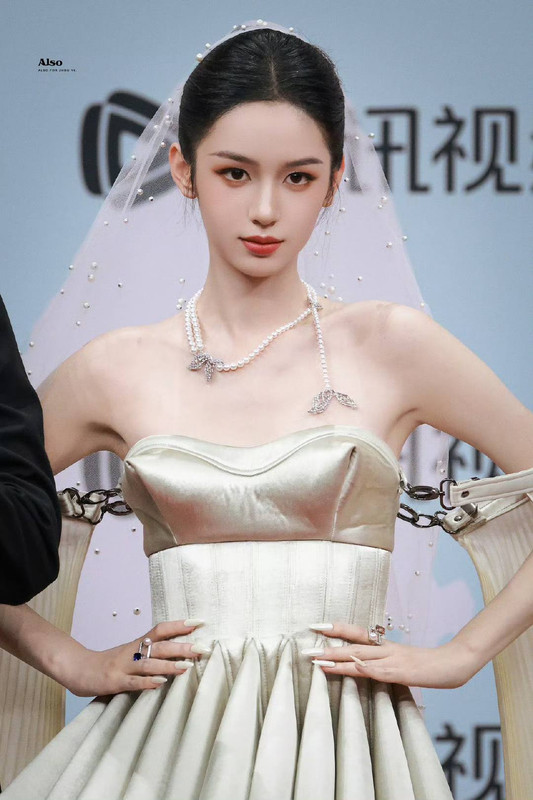 Với chi tiết phần ngực nhô ra cùng chiếc váy corset, Châu Dã mang đến sự phá cách, sáng tạo độc đáo trong thời trang. Bước lên thảm đỏ Tinh Quang Đại Thưởng, cô nàng khoe ra vẻ đẹp thanh thuần mà lạnh băng, khí chất sang chảnh tràn ngập mỗi khung hình. Tuy nhiên, chiếc voan dài thướt tha đã bị mắc vào một thanh sắt trang trí thảm đỏ đằng sau khiến Châu Dã ngã ngửa ra sau.