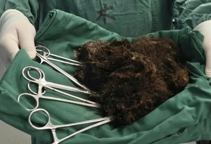Một cô gái 25 tuổi ở Hàng Châu (tỉnh Chiết Giang, Trung Quốc) vừa được bác sĩ phẫu thuật lấy ra khỏi dạ dày một khối tóc nặng gần 1 kg, hậu quả của thói quen ăn tóc kéo dài suốt 20 năm, bắt đầu từ khi cô còn học mẫu giáo.