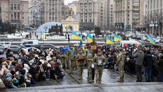 Một buổi tưởng niệm những chiến sĩ hi sinh ở quảng trường Kiev. Ảnh Pravda