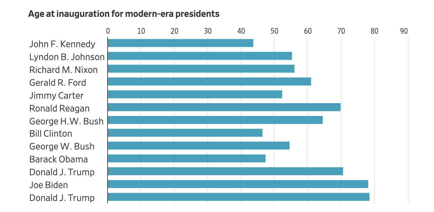 Độ tuổi nhậm chức của các Tổng thống Mỹ. (Biểu đồ: WSJ)