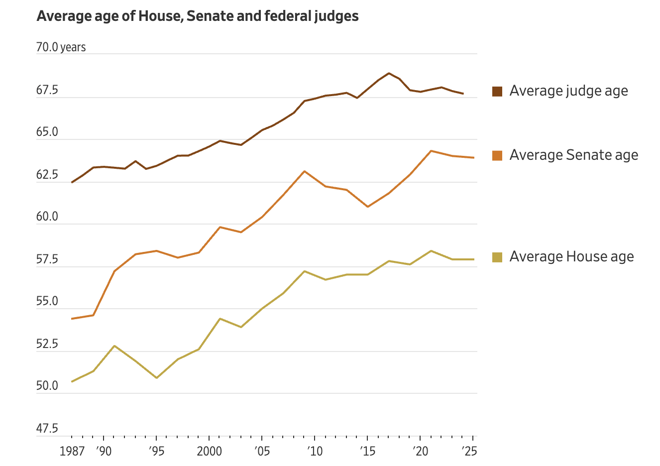 Độ tuổi trung bình tại Quốc hội và Tối cao Pháp viện đang ở mức khá cao. (Biểu đồ: WSJ)