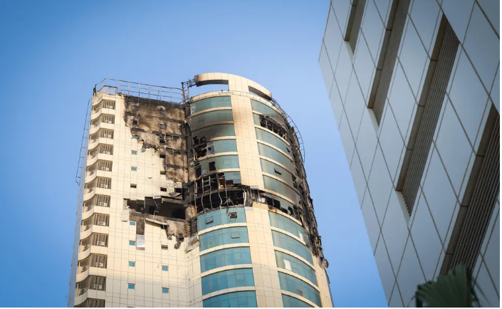 Tòa nhà bị hư hại do cuộc tấn công bằng uav của Iran tại Bahrain ngày 1/3.
