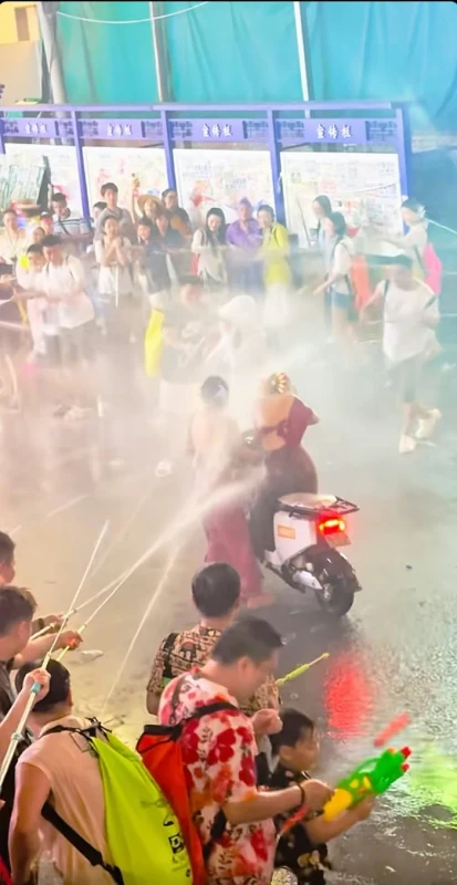 Cụ thể, vào ngày 13/4, trên mạng xã hội xuất hiện đoạn video ghi lại cảnh hai phụ nữ mặc trang phục mùa hè di chuyển bằng xe đạp điện qua khu chợ đêm Xingguang, thuộc thành phố Jinghong. Khi đi qua khu vực đông người, họ bất ngờ bị một đám đông vây quanh và liên tục dùng súng nước, thậm chí vòi phun áp lực cao, xịt thẳng vào người ở cự ly gần.