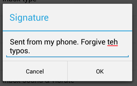Old  Default Cách thay đổi chữ ký email trên smartphone