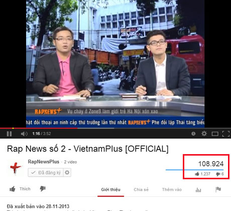 Chỉ 1 ngày sau khi đăng tải trên Youtube, clip bản tin thời sự được thực hiện bởi nhóm Rap News Plus mang tên "Rap News số 2" đã thu hút hơn 100.000 lượt xem trên Youtube.