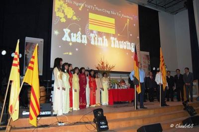 Dù vui Xuân xứ người nhưng người Việt Tỵ Nạn Cộng sản không quên Tổ Quốc Việt Nam trước nguy cơ mất nước vào tay Tàu Cộng. Bích chương trưng bày nơi quày bán thức ăn " Quày hàng yểm trợ các nhà dân chủ tại VN " phản ảnh rõ nét là NVTNCS không quên đồng bào và các bạn trẻ đấu tranh đang là nạn nhân của nhà cầm quyền cộng sản tại Việt Nam cũng như luôn cầu mong cho đất nước Việt Nam chúng ta sớm có Tự Do, Dân Chủ, Công Bằng và Bác Ái.