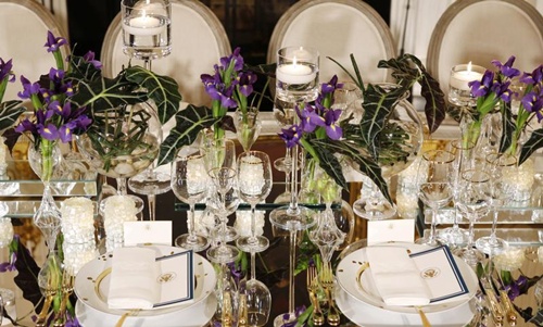 Trước đó, truyền thông được tiếp cận một bàn tiệc mẫu để có cái nhìn chi tiết hơn về quốc yến dành cho Tổng thống Hollande. Những bông hoa diên vĩ, quốc hoa của Pháp cũng được bày trên bàn tiệc. Ảnh: Reuters
