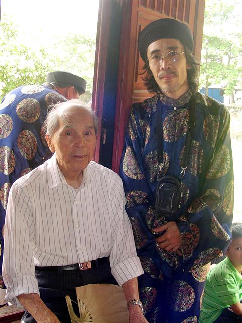 Hoàng tử Vĩnh Diêu (ngồi) cùng ông Nguyễn Phước Vĩnh Khánh chụp ảnh tại lễ kỵ vua Thành Thái năm 2010.