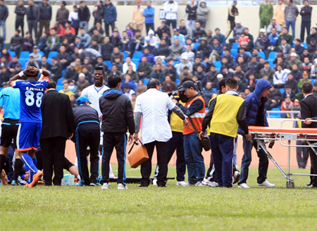 Old  Default Cầu thủ Than Quảng Ninh gãy gập cổ chân
