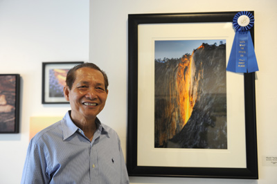 Nhiếp ảnh gia Lưu Thanh Vương và tác phẩm Yoshemite đạt giải nhất. (Hình: Văn Lan)