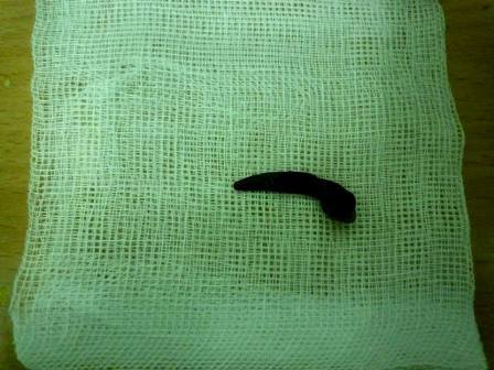 Con sên được gắp ra từ mũi cháu Hữu (Ảnh: B.T.)