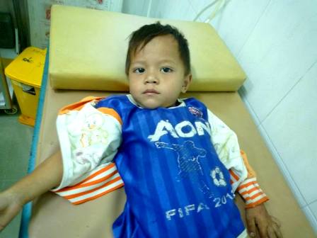 Cháu Hữu sau khi được gắp con sên trong mũi