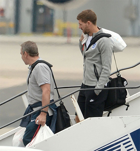 Gerrard bước xuống sân bay, hành lí của anh khá gọn nhẹ