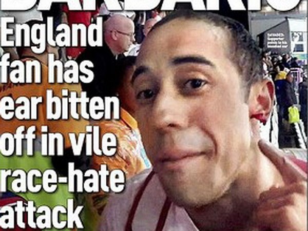 Cổ động viên Anh bị cắn tai. (Nguồn: SUNDAY PEOPLE)