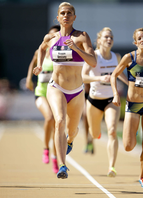 Vessey vẫn trở thành tâm điểm trong bộ đồ màu tím được coi là đơn giản, ít điệu đà nhất và giống truyền thống nhất tại giải vô địch điền kinh ngoài trời USATF Sacramento hồi tháng 6. Người đẹp 32 tuổi thiết kế áo đấu dạng yếm đồng thời đeo một bên hoa tai suốt cuộc thi.