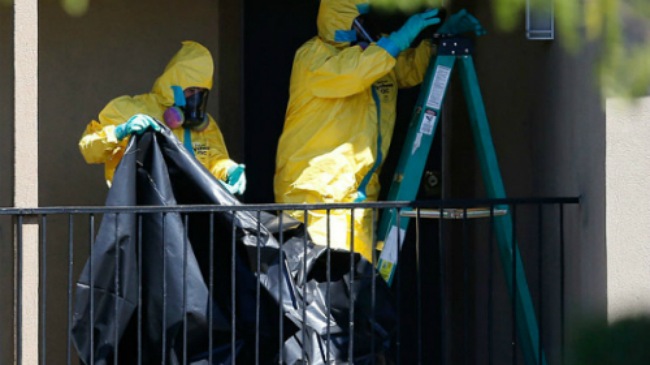 Nhân viên y tế đang khử trùng căn nhà nơi Thomas Eric Duncan đã ở tại Mỹ (Ảnh: Reuters)