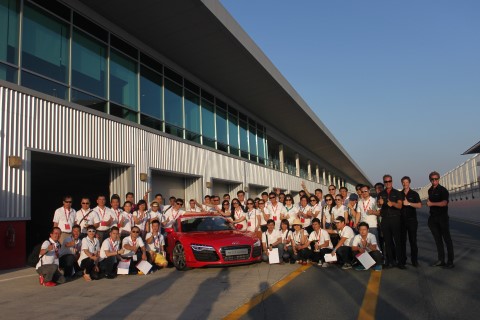 Các tín đồ tốc độ đến từ Việt Nam phấn khích trải nghiệm cảm giác sau tay lái với siêu xe Audi R8 V10 trên đường đua Dubai Autodrome cùng sự hướng dẫn của các chuyên gia của Audi.