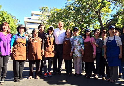 Ông Lou Correa chụp hình lưu niệm cùng các thiện nguyện viên của chùa Bảo Quang.