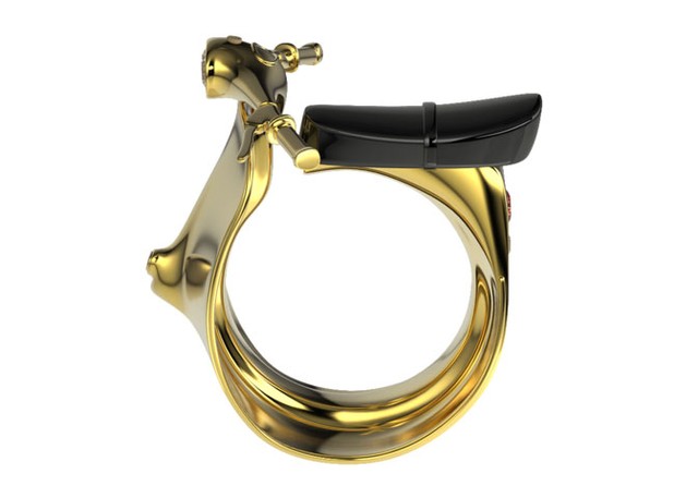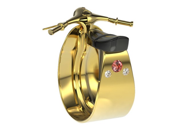 Mẫu nhẫn cưới bằng vàng hình xe Vespa sẽ được bán với giá 125 USD trên thị trường.