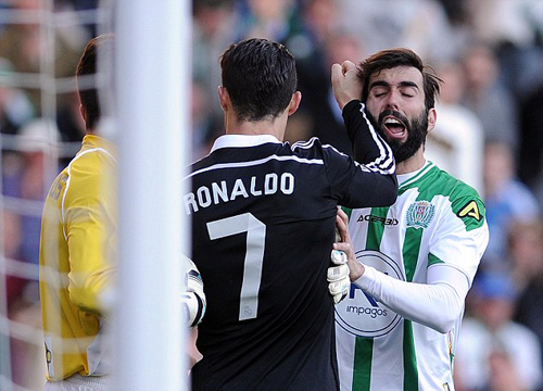 Cuối tuần qua, C. Ronaldo phải nhận thẻ đỏ sau pha cố tình đá vào chân của hậu vệ Edimar trong trận đấu giữa Cordoba và Real ở vòng 20 La Liga. May cho CR7 là Real không phải trả giá vì hành vi nóng nảy của anh khi vẫn giành chiến thắng chung cuộc 2-1 để bảo toàn vị trí đầu bảng. Đây là thẻ đỏ thứ 5 của siêu sao người Bồ Đào Nha trong 6 năm thi đấu ở Tây Ban Nha. Trước đó, lần gần nhất anh bị truất quyền thi đấu là trong trận gặp Athletic Bilbao, cách đây 13 tháng.