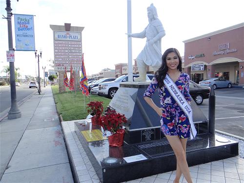 Miss Nebraska USA 2015 Cung Hoàng Kim ở Tượng Đức Thánh Trần ở Bolsa hôm Thứ Bảy 31-1-2015.