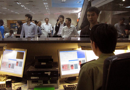 4- Bạn cần phải đứng nghiêm để công an soi hộ chiếu xem có phải bạn là người đúng trong hộ chiếu hay không.