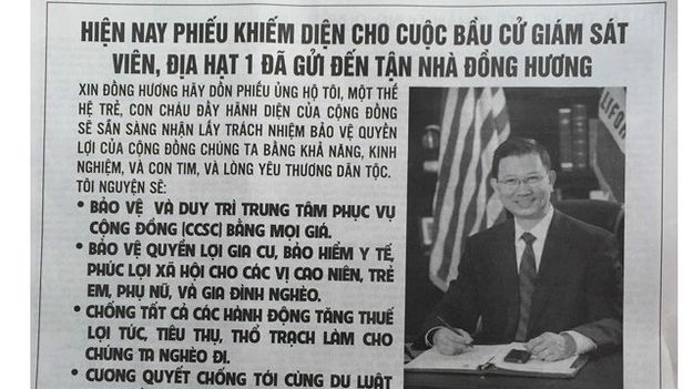 Vận động bầu cử của ứng viên Andrew Đỗ trên báo tiếng Việt ở Nam California