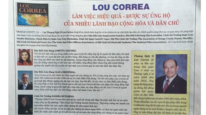 Vận động bầu cử của ứng viên Lou Correa trên báo tiếng Việt ở Nam California