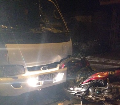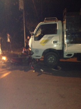 Ghi nhận tại hiện trường cho thầy chiếc xe máy nát bét phần đầu , xe tai móp cabin, người đã được đi cấp cứu trong tình trạng nguy kịch.