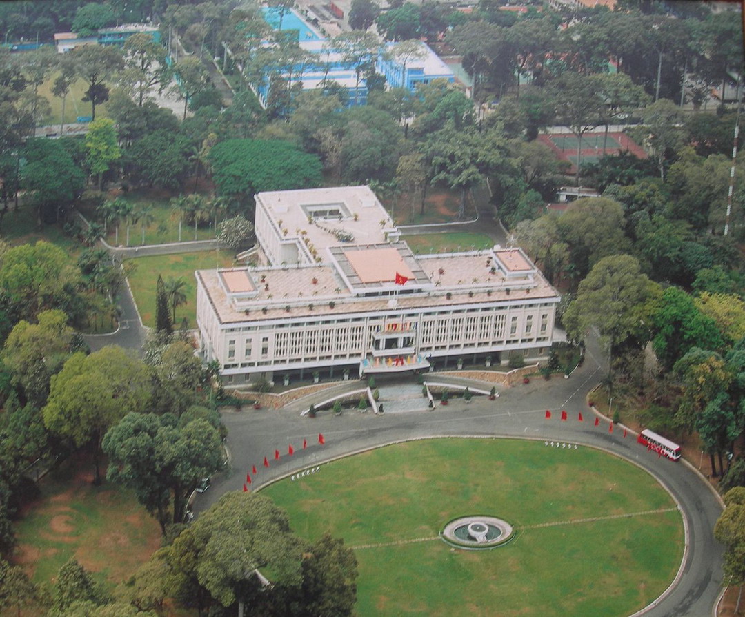 Bảng đồng ở Dinh Độc Lập, một trong những công trình kiến trúc quy mô nhất của Ngô Viết Thụ