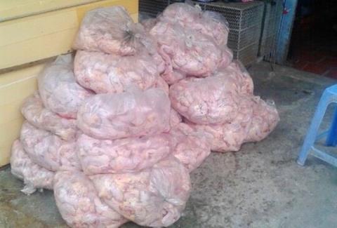 Tang vật thu giữ là 1.352 kg đầu gà và gà nguyên con đã được vặt lông nhưng không có giấy chứng nhận kiểm dịch và không có giấy chứng nhận đủ điều kiện vệ sinh thú y.