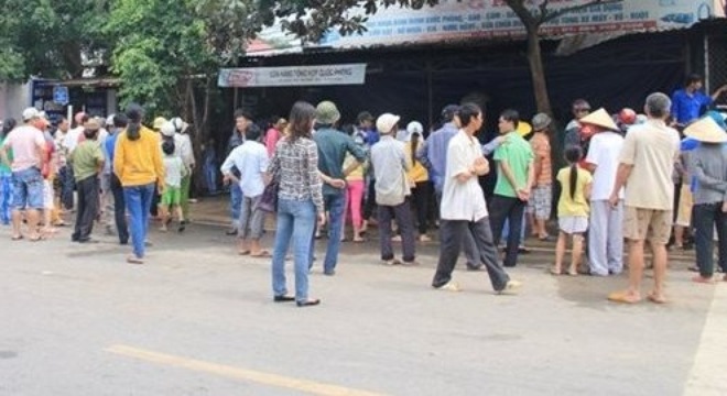 Người dân hiếu kỳ vây quanh trụ sở công an phường