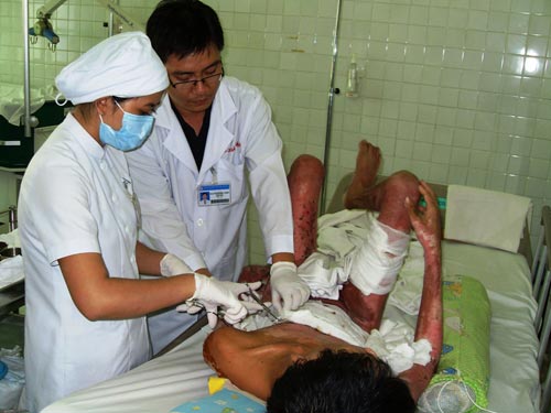 Bác sĩ cho biết, bà H’Giang Ông bị cháy toàn bộ tóc, bỏng khắp người; cháu Y Khang và Y Thiên bị bỏng nặng ở tay, chân.