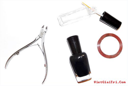 Tất cả những gì mà nàng cần chuẩn bị đó là: sơn bóng, sơn đen, kéo cắt, băng dính vằn.