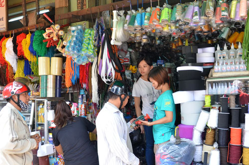 Nguyên phụ liệu dệt may phần lớn nhập từ Trung Quốc được bán trên đường Hòa Hảo, quận 11, TP HCM Ảnh: Tấn Thạnh