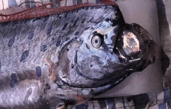 Cũng trong tháng 5 vừa qua, một con cá lạ có phần đầu giống đầu rồng dài khoảng 3m, nặng hơn 30kg trôi dạt vào bờ biển ở Thanh Hóa khiến người dân nơi đây xôn xao.