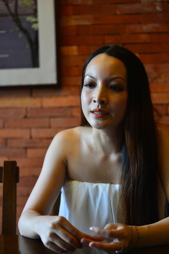 Linh Nga trong chuyến về nươc, gặp gỡ báo chí mới đây. Ảnh: Quang Trung