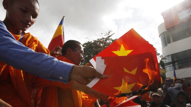 Ngoài vấn đề di dân, phe đối lập cũng thường cáo buộc chính quyền “dâng đất” cho Viêt Nam. Trả lời VOA Việt Ngữ khi biểu tình bên ngoài trụ sở Liên Hiệp Quốc hôm 26/9, ông Thành Kiên, một người Khmer Krom, nói với VOA Việt Ngữ: “Nếu mà giải quyết vụ đất đai không được hoặc không thể giải quyết cái vụ người Việt Nam ở trên đất nước Campuchia bất hợp pháp quá nhiều thì nên cho [Thủ tướng] Hun Sen ra đi".
