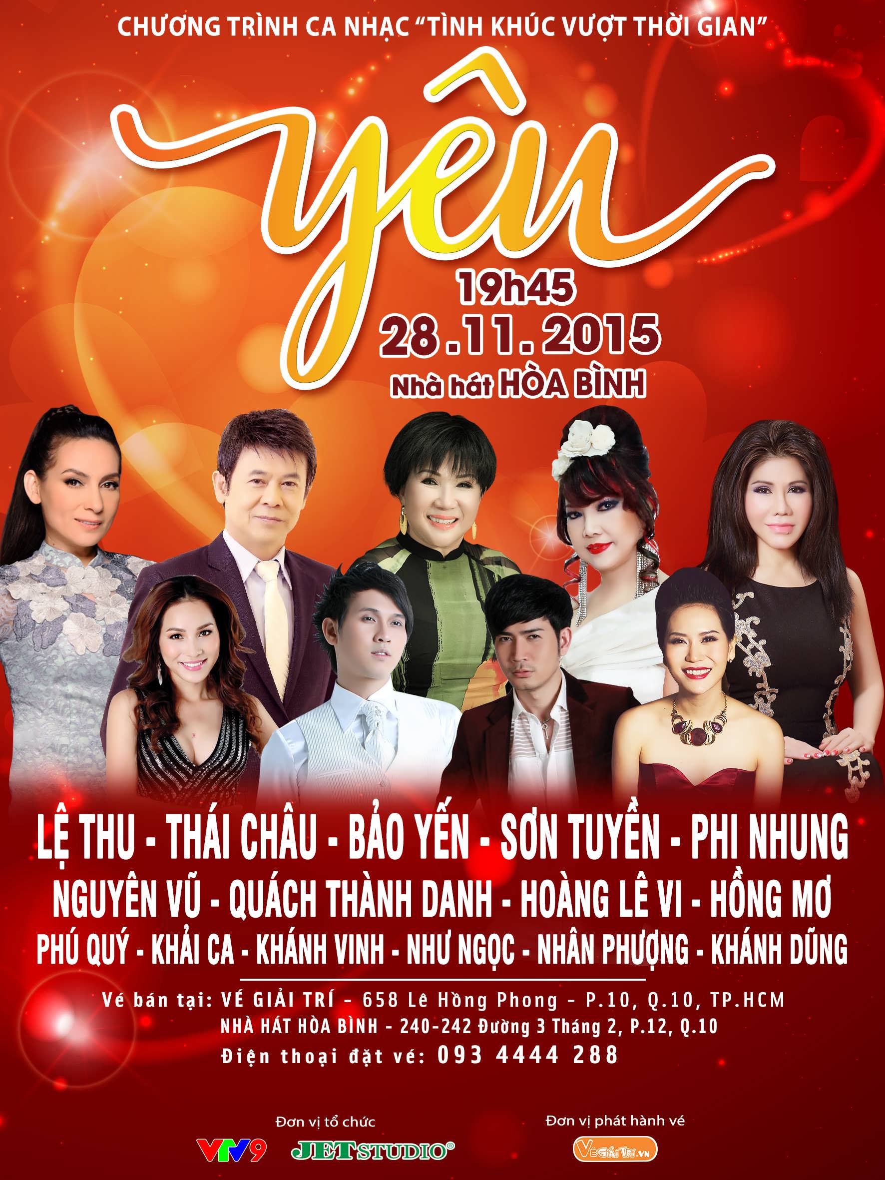 Chương trình sẽ diễn ra vào lúc 20 giờ ngày thứ bảy 28/11/2015 tại nhà hát Hòa Bình.