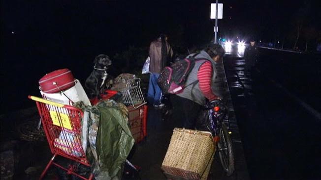 Một người vô gia cư rời khu “The Jungle” ở San Jose vào ngày 4 tháng 12 năm 2014 khi cảnh sát đóng cửa khu trại vô gia cư lớn nhất trên cả nước – Photo Courtesy: NBC Bay Area