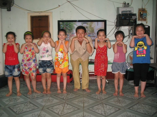 Hùng thăm một lớp học ở Thanh Hoá hồi năm 2012 trong chuyến xuyên Việt. Ảnh: NVCC