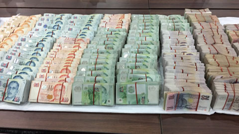 Số tiền mặt cảnh sát thu giữ được tối 5/1 khi bắt giữ các nghi phạm. (Ảnh: CNA)