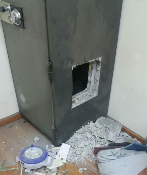 Két sắt đã bị đục phá. (Ảnh: CNA)