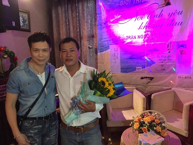 Vừa về tới Việt Nam, ca sĩ Jimmy Nguyễn đã có mặt tại buổi ra mắt thơ của bạn bè - Ảnh: Quỳnh Trân
