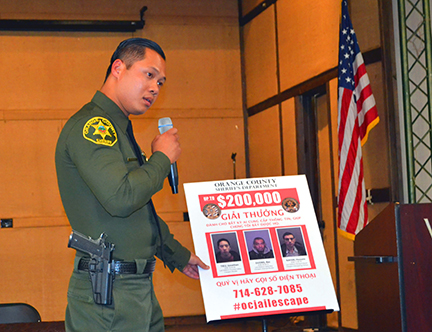 Vào chiều ngày 26 tháng Giêng, 2016, Giám Sát Viên Andrew Đỗ đã mời nhân viên cảnh sát Santa Ana, anh Phương Nguyễn và hai nhân viên Cảnh Sát Orange County Sheriff đến hội trường Việt Báo để phổ biến tin tức và giải đáp các câu hỏi của truyền thông về vụ ba tù nhân, trong đó có hai can phạm người Việt.