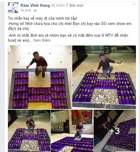 Trên trang cá nhân facebook của Đàm Vĩnh Hưng, nam ca sĩ hào hứng tiết lộ vừa phải đặt thêm 100 bông hồng vàng sau khi đã đặt 100 bông trước đó. Lý do là bởi lượng khán giả đăng ký tham dự show diễn “Lời tình cho giai nhân” đã tăng lên nhiều.