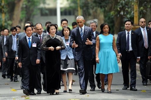 Cố vấn An ninh Quốc gia Susan Rice (mặc đầm xanh) luôn sát cánh cùng Tổng thống Obama khi ông làm việc với các nhà lãnh đạo Việt Nam. Ảnh: EPA