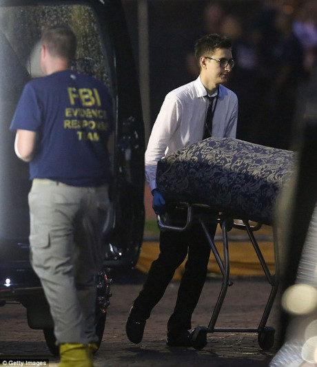 Cảnh sát và lực lượng cứu hộ vận chuyển thi thể nạn nhân vụ xả súng ở Pulse Club khỏi hiện trường.