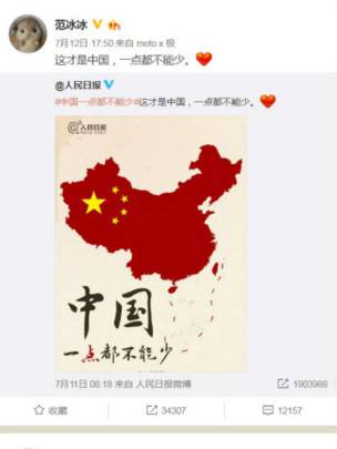 Các sao Việt và Trung cũng đã lên tiếng về vấn đề chính trị. Có vẻ tầm ảnh hưởng của chủ quyền biển đảo đã lan rộng không tưởng. Nhiều ngôi sao Trung Quốc đã lên mạng xã hội bày tỏ ủng hộ lập trường Trung Quốc sau khi tòa quốc tế ở Hague ra phán quyết về vụ kiện Biển Đông của Philippines.
